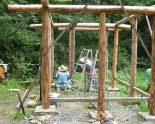 軒桁と梁を緊結しているところ 家造りを体験できた貴重な場所 今回は、大工の基本を学ぶために通っていた体験塾での話の第2回目です。 冒頭の写真は、山小屋での作業中の一コマです。中川さんが上がって、軒桁と梁を緊結するためのボルトを締めているところ…